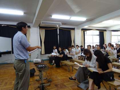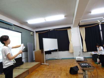 ふれあいホールにて,長期宿泊学習「花背山の家」説明会を行いました。みさきの家での活動よりも1泊多くなります。