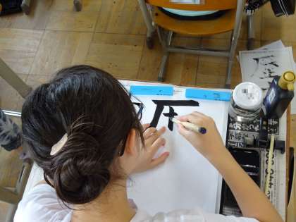 文字の組み立て方を確かめ,よい姿勢・持ち方で書きました。