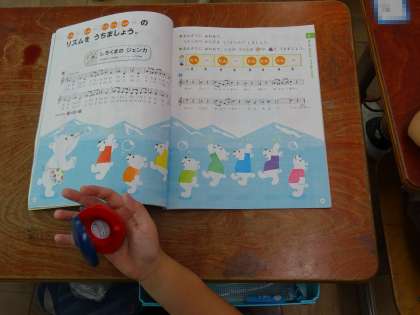 ♪1年生 音楽「はくをかんじて リズムをうとう」〜音楽に合わせて〜