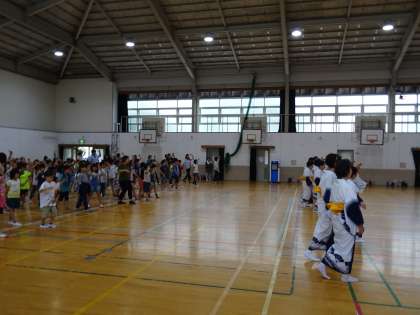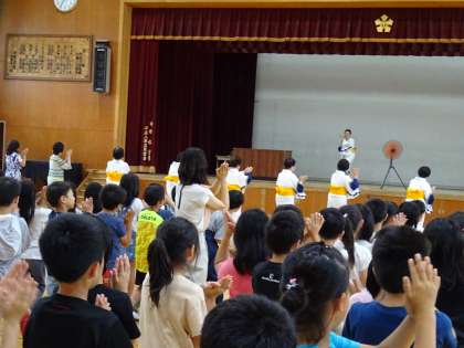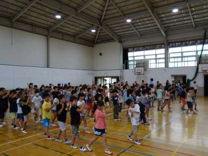 女性会会長様のご指示に従い,子どもたちは基本の振り付けを覚えました。