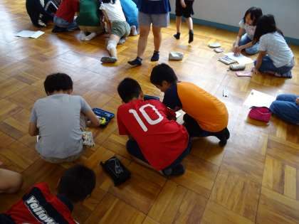 花背山の家に向けて,係活動を始めています。保健・食事係の活動の様子です。