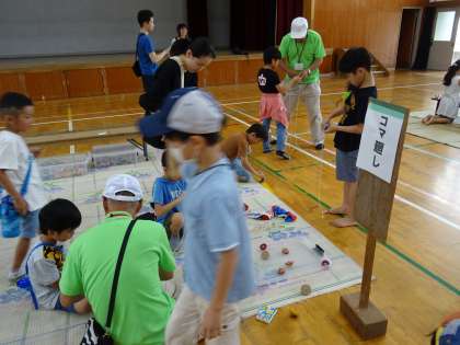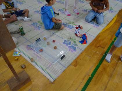 「こま廻し」です。地域の方に教わる姿が見られました。