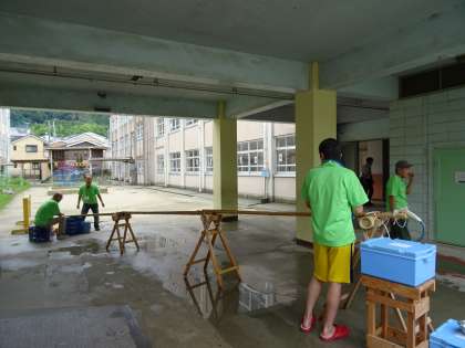 流しそうめんです。地域の方の説明を聞き,学年ごとにスタートです。