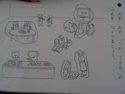 ○○が〜する。の文を書く練習をしました。