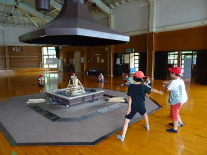 プレイホールでは,キャンプファイヤーに向けてレクリエーション係が活動をしていました。