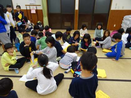 90畳に戻り,各係ごとのふり返りから班でのふり返りを行いました。