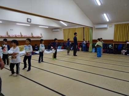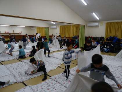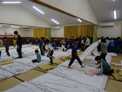 降雨のため,男子はテントではなく90畳での就寝です。お休みなさい!