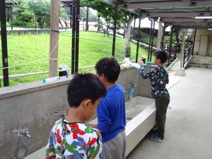 寝具を整理した人からシーツを返却して,洗顔です。