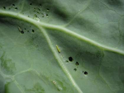 キャベツの葉の上に,小さな小さな卵を見つけました。