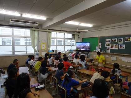 夏の終わりの校庭でよく見かける動物の活動や植物の生長の様子について,話し合いました。