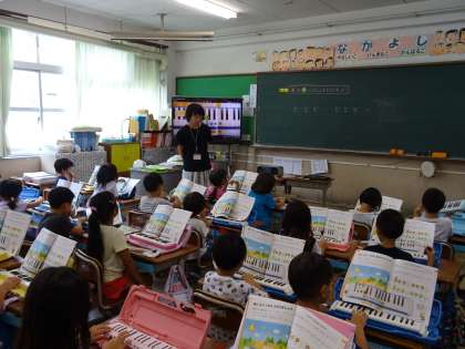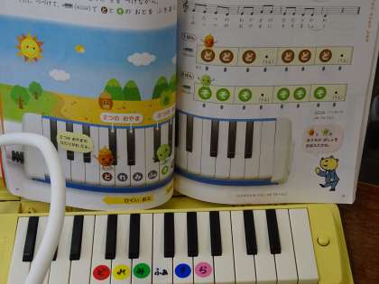 鍵盤ハーモニカの「ド」と「ソ」の鍵盤の位置を確かめて,音を出しました。