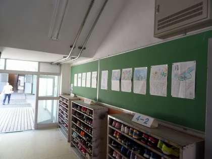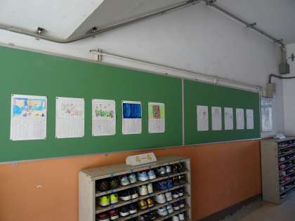 1年生の学年掲示板です。夏休みの絵日記を掲示しています。