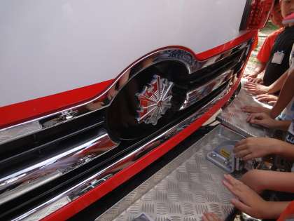 消防車も運動場にやって来ました。子どもたちは大興奮でした。