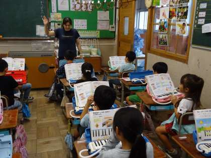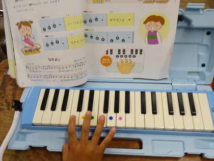 「ファ」と「ソ」の鍵盤の位置と指番号を確かめ,音を出しました。