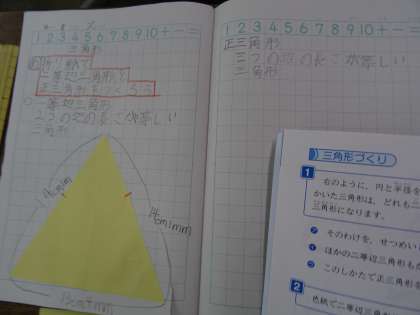 三角形を作って分類する活動を通して,二等辺三角形・正三角形について考えました。
