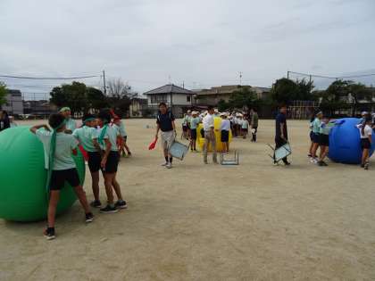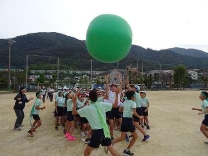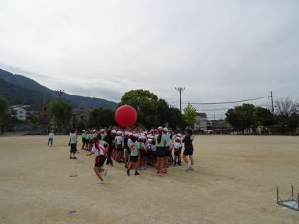 四色対抗大玉送りです。各チームごとに,大玉を運びました。
