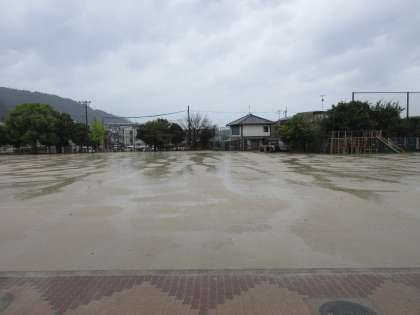 今後,雨が降り続き,明日の早朝にはまとまった雨の予報が出ております。その後も曇り一時雨とのことです。昨日からの雨でグランドは完全に水を吸っており,少しの雨でもすぐに水が浮き,グランド全面に水たまりができるような状態です。前日及び当日朝の準備もままならない現状を考えますと実施は困難です。