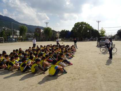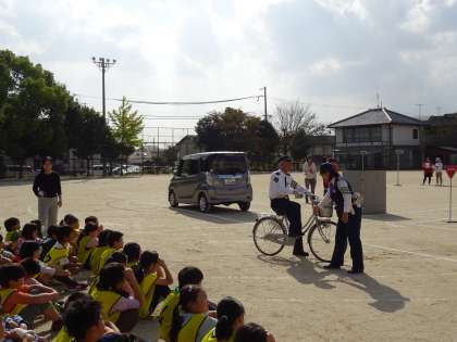 京都府警察山科署の交通課のみなさんと大宅交通安全対策協議会のみなさんにお越しいただきました。