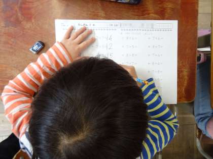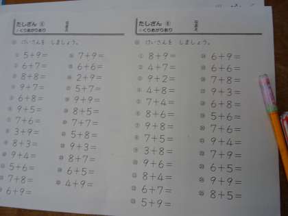 1けた+1けたのたし算の練習問題に取り組みました。