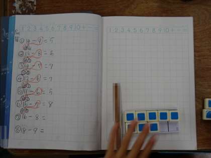 くりさがりのあるひき算の練習問題に取り組みました。