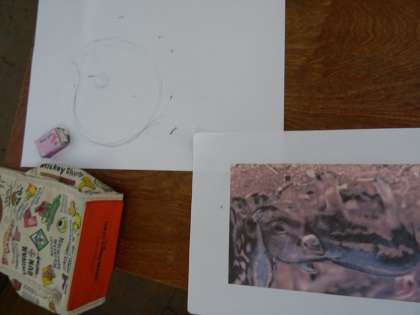 版にする動物をよく見て,構成を考えました。