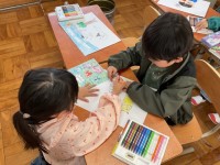 1年生をむかえる会で、もらったプレゼントで遊んだり、使ったりしました。さまざまな工夫をこらしたプレゼントに1年生みんな喜んでいました!