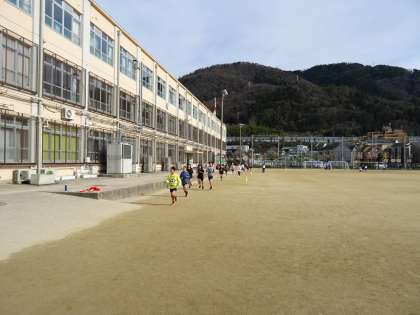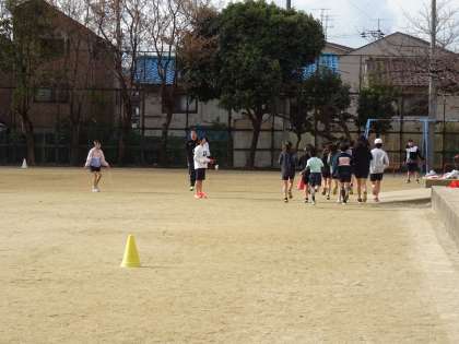 運動強度を確かめながら自分の体力に合わせてジョギングを行いました。