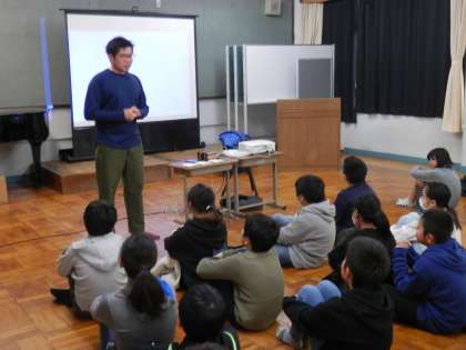 5年生は総合的な学習の一環として,写真家の先生にお越しいただきました。まずは,写真家の仕事についてお話を聞きました。先生の思いや工夫に,子どもたちは興味津々でした。次に,運動場に移動してアルミ缶を使った日光写真を撮影しました。