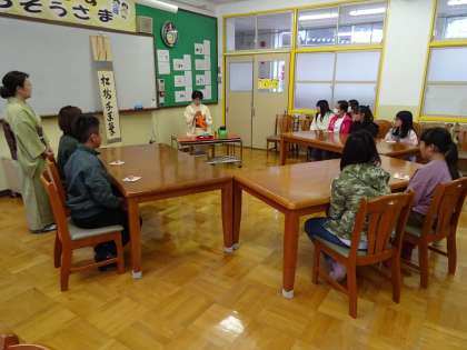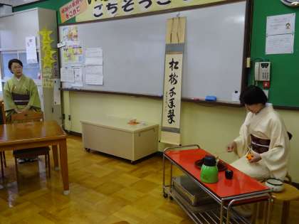 茶道部の活動です。地域ボランティアの講師の方に,丁寧に教えていただきました。