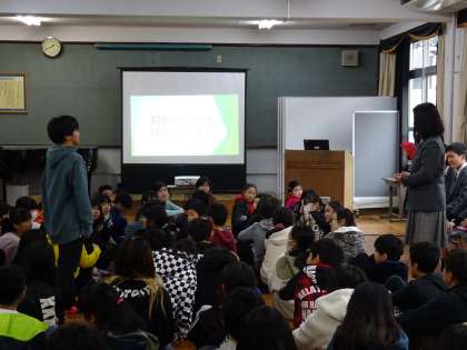 最後は,質問の時間です。6年生の質問に,中学校の先輩は丁寧に答えてくれました。