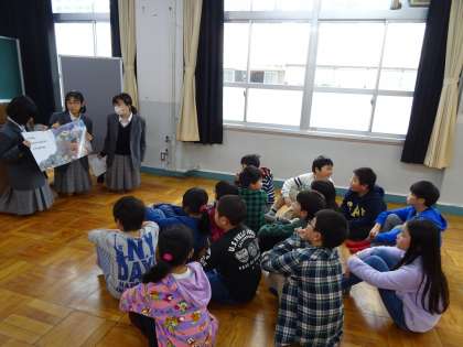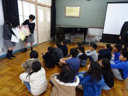 大宅中学校の先輩による英語の読み聞かせを行いました。