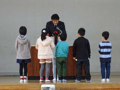 絵画のコンクールに出品した児童への感謝状の贈呈です。