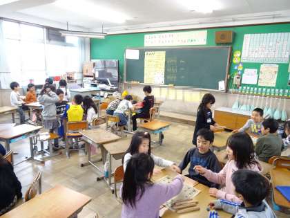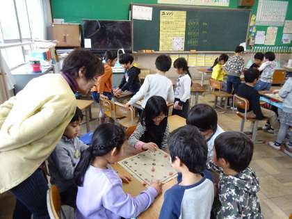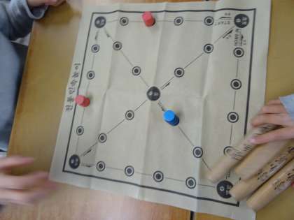 「ユンノリ」を楽しんでいます。となりの国の韓国・朝鮮の文化を通して,日本と似ているところや違いについて,考えました。