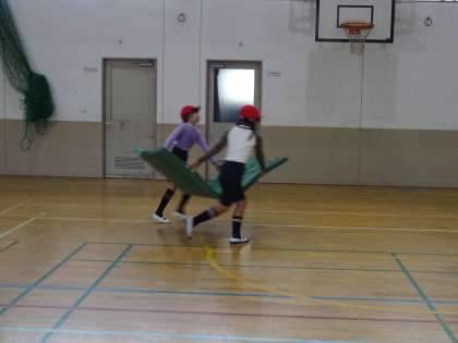 安全に用具を取り扱い,場の準備をしています。