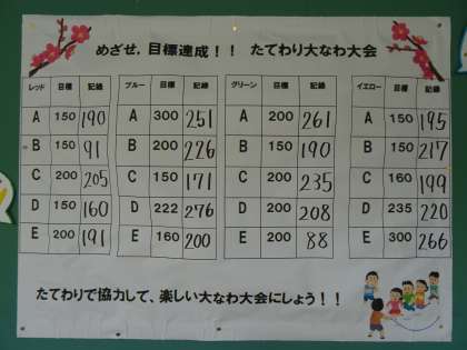 「大なわ大会」の結果発表です。276回のDチームが見事1位でした。