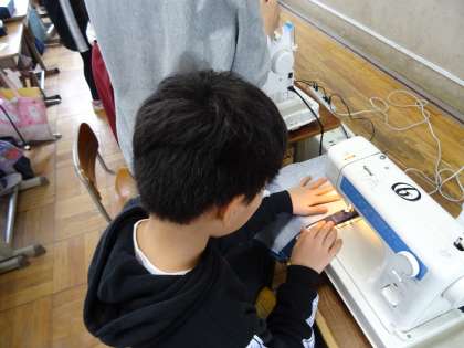 ♪5年生 家庭「ミシンにトライ!手作りで楽しい生活」〜直線縫い〜 その4