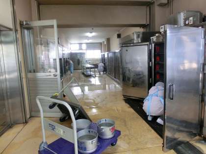 来週からの給食再開に向けて,給食調理員さんが,給食室をピカピカに掃除してくださっていました。いよいよ来週からおいしい給食が食べられます。毎日の給食時間が今から楽しみですね。