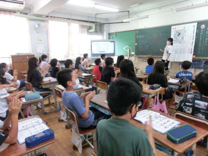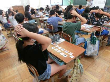 5年生になり,本格的に英語の学習が始まっています。音楽に合わせて,英語を歌ったり,カードを使ってゲームをしながら,難しい単語を楽しく覚えています。