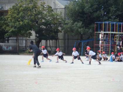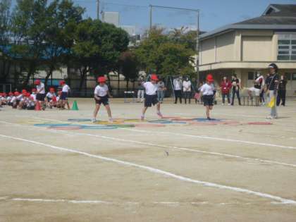1年生にとっては初めての「体育発表会」でした。50メートルの長い距離を元気いっぱいに走り抜けました。