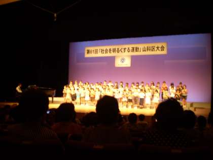 社会を明るくする運動山科大会が7月10日(日)東部文化会館で行われました。その大会に3年生が出演しました。習い始めたリコーダーと歌を1曲歌いました。大きな会館で緊張気味でしたが、のびやかに笑顔で歌うことができました。大変良い経験ができました。ありがとうございました。