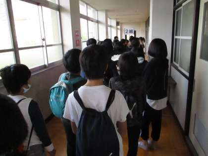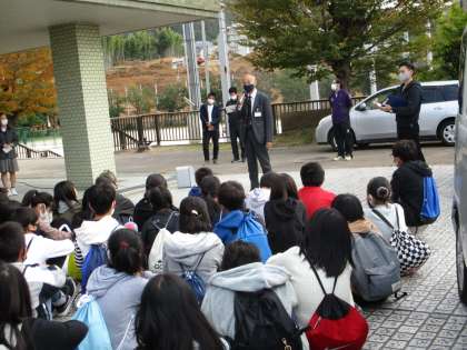 初めて中学校の門をくぐり,生徒会の先輩方や中学校の先生方の話を聞いて,少し緊張した面持ちで見学がスタートしました。