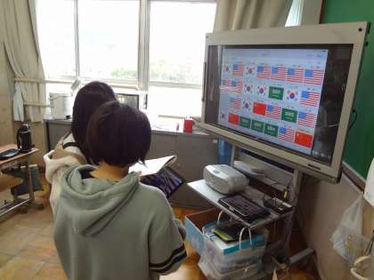 学校生活の様子,衣食住,産業の様子,文化・スポーツの4点を,ICTを活用して交流しました。