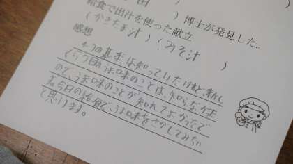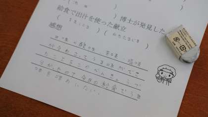 本日,食に関する指導を受け,「甘味」「苦み」「酸味」「塩味」「旨味」の5つの味について学習しました。普段から食べているお家での食事や給食でも,これらの味を感じ取れるということを知り,これからの食事を味を探しながら食べてみようという気持ちを感じていました。食事をより楽しめるようになると素敵ですね。