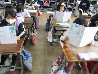 お話の作者になろうの学習で作ったお話を,お友達と読み合う活動を行いました。
