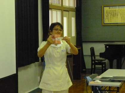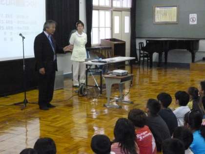歯科衛生士さんにきていただき,歯についてのお話をしてもらいました。