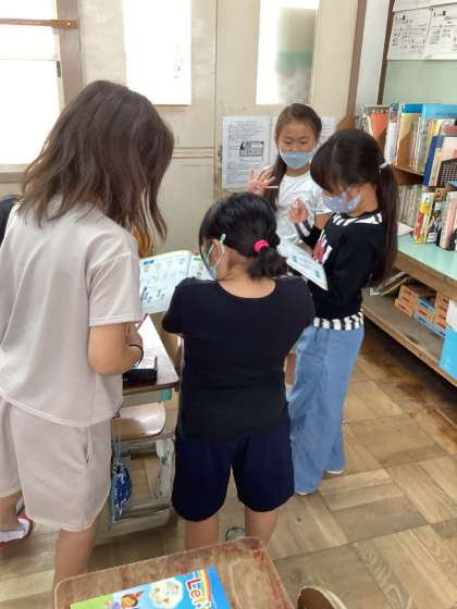 中には,ジェスチャーを使って,相手に分かりやすく伝えようとしている子もいました。