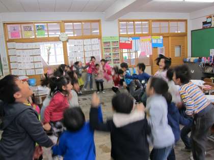 「天までとどけ,一,二,三。」とかけ声で,くじらぐもに乗りました。くじらぐもの上では,どんなお話をしているのでしょう。「ふわふわ,わたあめみたい。」「落ちそうになったよ!」とくじらぐもの学習を楽しみました。