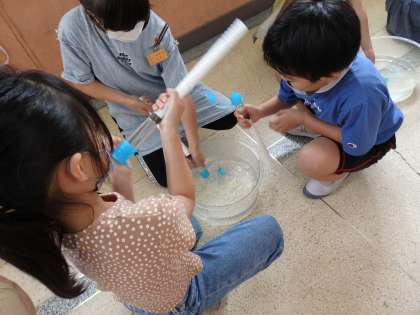 理科の学習で「とじこめられた空気と水」の学習をしています。とじこめた空気と水に力を加えると体積や手ごたえはどうなるのかを調べています。水と閉じ込めたときには,子どもたちは「押せない!」「固い!」と言いながら,水はおしちぢめられないことを学びました。