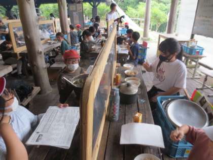 野外炊事,みんながんばりました。おいしく出来上がりました。