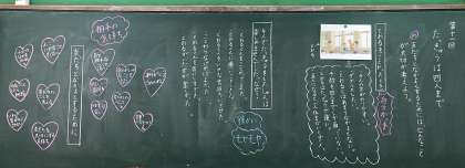 最後は,友達となかよくするために大切なこと13箇条を出しました。言葉に気をつける,誰とでも仲良くする,など,温かい言葉がたくさん出ました。今日考えたことを生活に生かして,みんなの気持ちもポカポカのハートでいっぱいにしてあげてください。